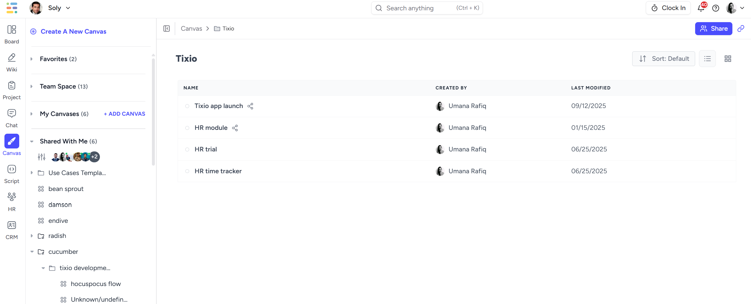 Tixio Canvas is a visual drawing and collaboration tool that's ideal for brainstorming and ideation. To use Canvas in Tixio go to the canvas module from the left sidebar.