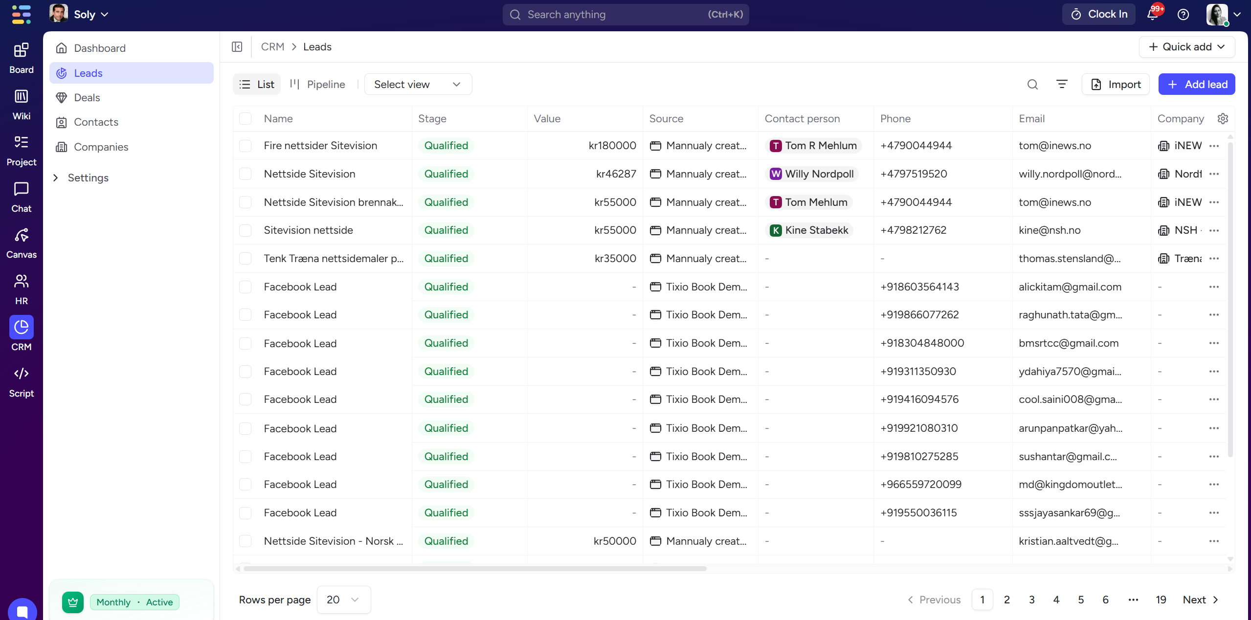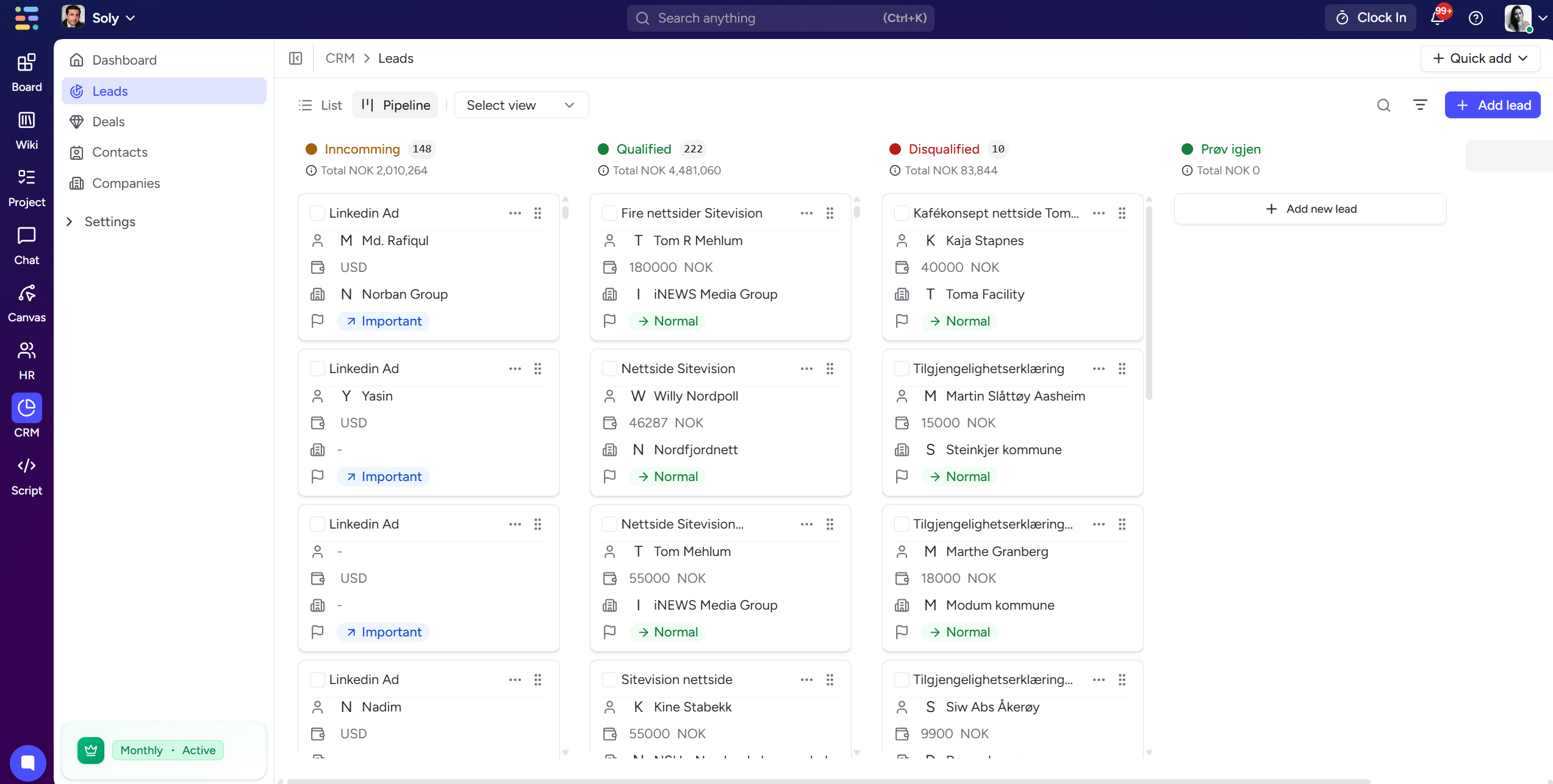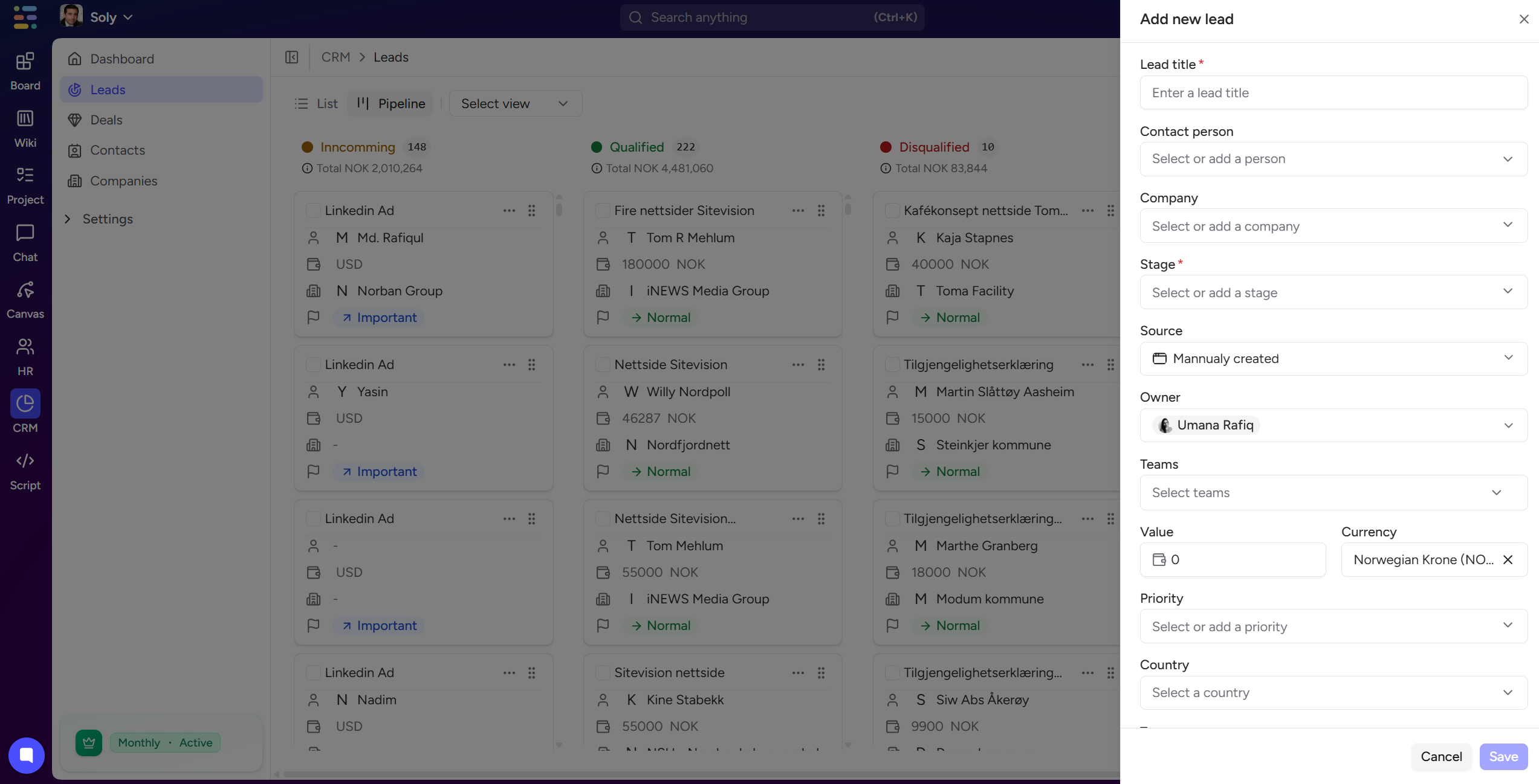 The Leads module helps you manage inbound prospects before they become deals. Leads can come from ads, forms, integrations, or manual entry.
